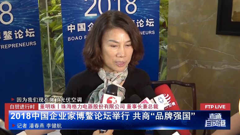 珠海格力电器股份有限公司 董事长兼总裁 董明珠:如果海南需要建设一个绿水青山,蓝天白云,我们肯定会有这样的(战略)打算。因为我们现在做了光伏空调,可以说是世界独一的技术,。你像海南这样的天气,最符合用光伏空调。那比如我们现在很多地方用光伏电厂,好像这些他们又有巨大的问题,就是资源的消耗,白天没人用,它采集的资源没办法存储,那我们现在把这些问题给解决了,所以你不断地创新你就会有市场。
