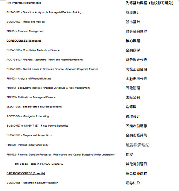 Pennsylvania State University Finance Master's Program( http://gv.psu.edu/Academics/Degrees/32097.htm )