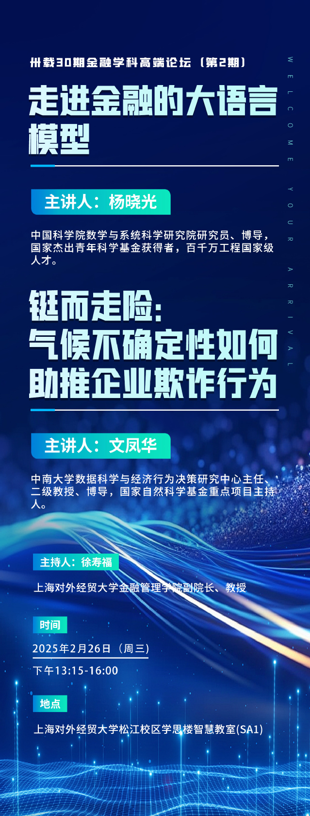 【卅载30期金融学科高端论坛丨第2期】杨晓光 走进金融的大语言模型、文凤华:铤而走险——气候不确定性如何助推企业欺诈行为