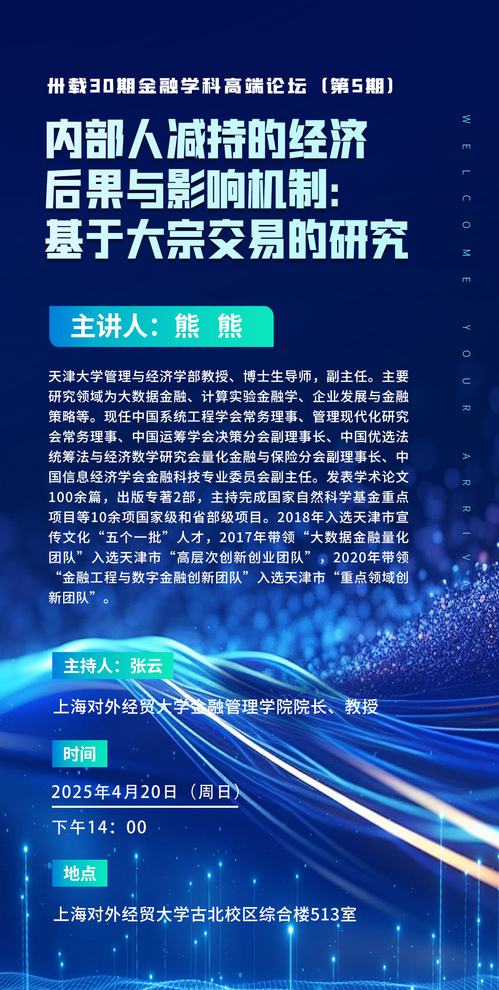 【卅载30期金融学科高端论坛丨第5期】熊熊 内部人减持的经济后果与影响机制:基于大宗交易的研究
