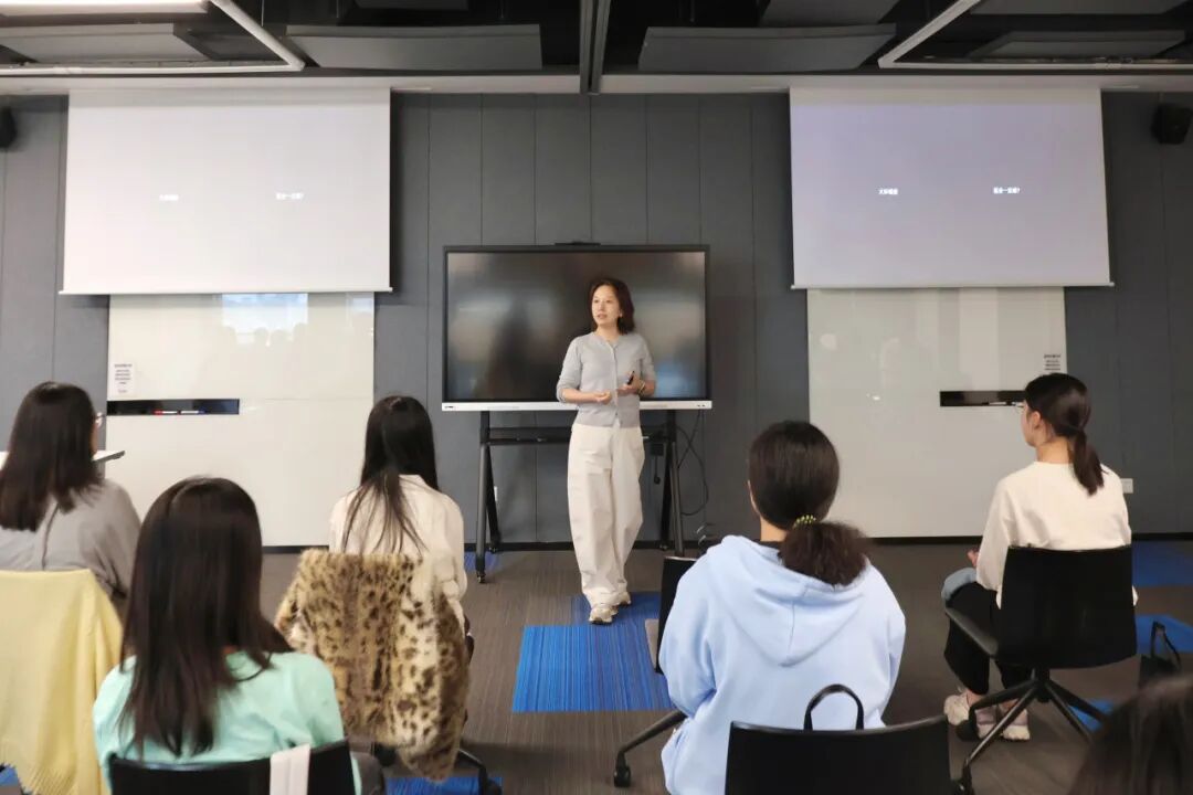人力资源部负责人Julia从企业招聘视角出发,指出面试中尤为重视候选人的独立思考能力与知识转化能力,即如何将学术积累灵活运用于实际业务场景。她鼓励同学们挖掘自身优势、主动规划职业路径,为现场学生提供了具实操意义的求职指引。
