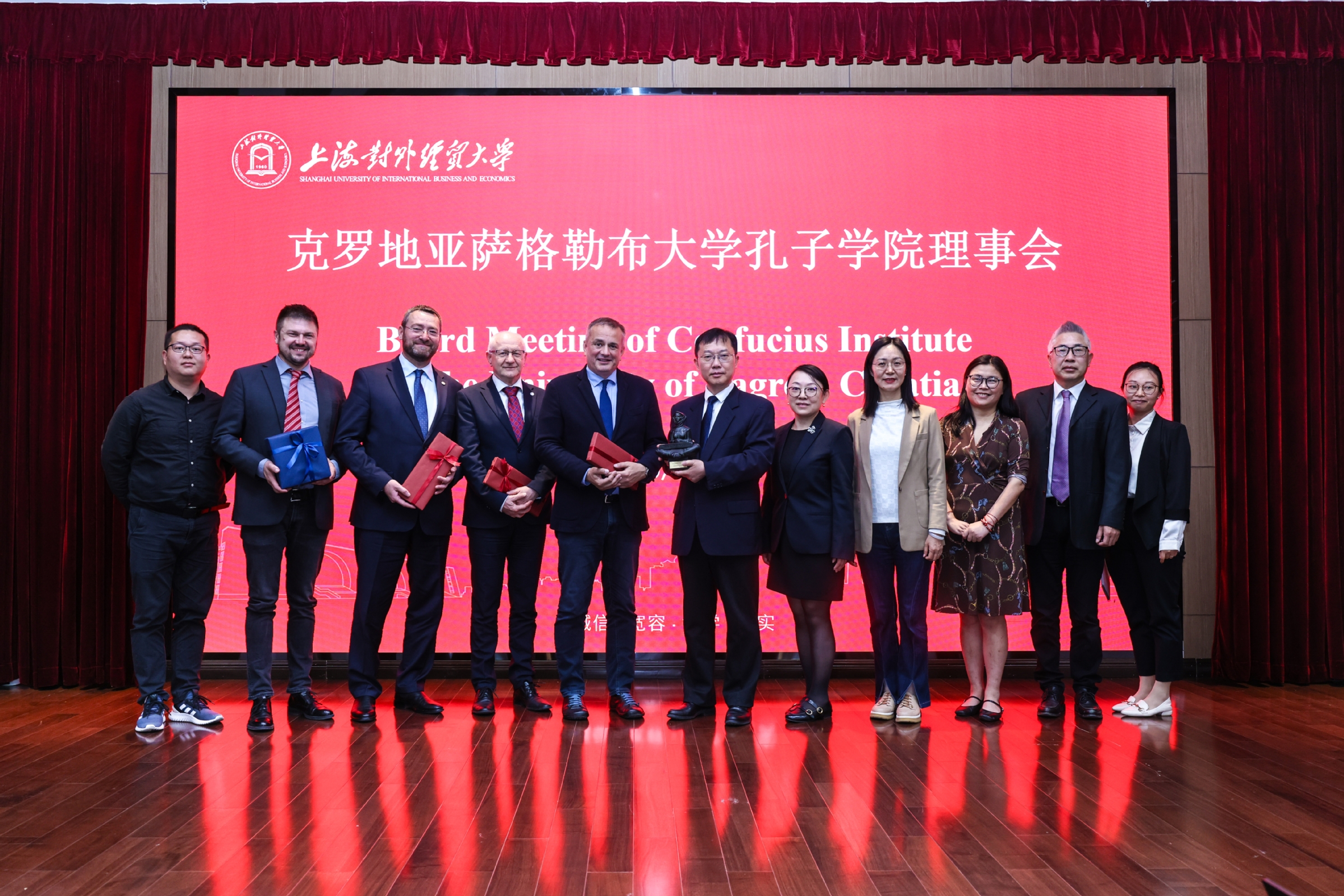 4月16日下午,克罗地亚萨格勒布大学孔子学院(以下简称“萨大孔院”)理事会在学校古北校区召开。校长、萨大孔院中方理事长汪荣明,外事处处长金泉,财务处处长殷枫,外事处副处长张水辉等中方理事会成员与萨格勒布大学副校长Jurica Pavicic、TomislavJosipMilinaric、Dubravko Majetic等外方理事会成员共同出席会议。萨大孔院中方院长杨海燕、外方院长Kresimir Jurak及学校外事处相关工作人员列席会议。汪荣明欢迎并感谢萨大领导来访,并简要介绍了学校近年来在人才培育、学科建设、智库研究及国际合作交流等方面取得的最新进展。他指出,在中国国际中文教育基金会和教育部中外语言交流合作中心的指导支持下,通过大家共同努力,萨大孔院建设成效显著。萨大孔院为促进中克两国人文交流、教育合作和经贸往来搭建了重要平台。两校以萨大孔院为纽带,在高层互访、师资交流、学生互换、联合科研等领域开展了全方位合作,取得了丰硕成果。他表示,学校会继续全力支持萨大孔院的特色发展,同时深化两校合作与交流。希望萨大孔院更好发挥在中克经贸合作中的纽带作用,积极为中资企业海外发展提供服务和支持,