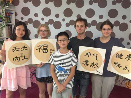 除了包饺子,孩子们还把外国友人带入到自己的兴趣爱好中,有的学生教他们写书法、有的在一起画扇面有的学生给他们讲解电视中正在播出的《西游记》中的“Monkey King”;还有的表演中国功夫……互动中,国外学生感受中国传统文化的独特魅力,尽显热情好客的传统美德。