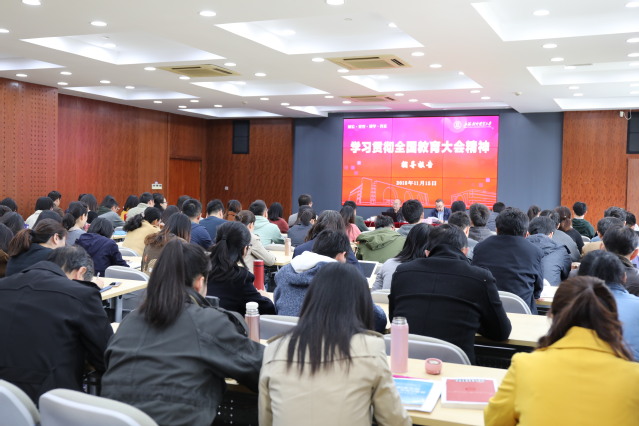 为学习贯彻全国教育大会精神,11月15日,学校举行学习贯彻全国教育大会精神专题培训会,邀请北京师范大学思想政治工作研究院院长冯刚教授作《学习贯彻全国教育大会和全国宣传思想工作会议精神,落实立德树人根本任务》专题报告。学校学工系统全体成员、教职工党支部书记、纪委委员、宣传员、马克思主义学院教师参加专题培训,培训由党委宣传部部长严大龙主持。