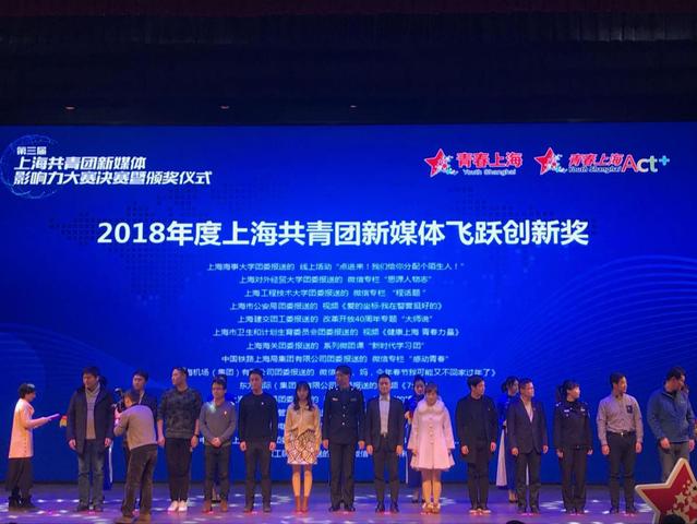 1月3日,由共青团上海市委主办,青春上海媒体中心、上海共青团新媒体联盟承办的第三届上海共青团新媒体影响力大赛决赛暨颁奖仪式在上海世博会博物馆WE剧场举行。由我校团委报送的原创微信公众号专栏“思源人物志”荣获“2018上海共青团新媒体飞跃创新奖”。该奖项今年共有30家微信公众号的创意项目入围,其中高校微信公众号有8家。