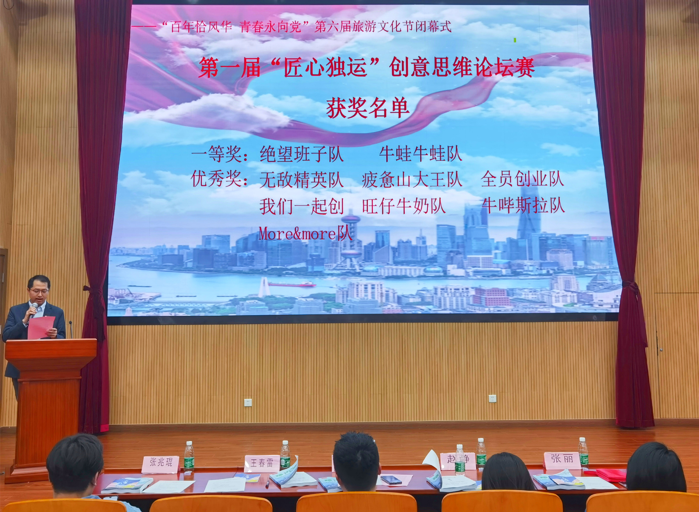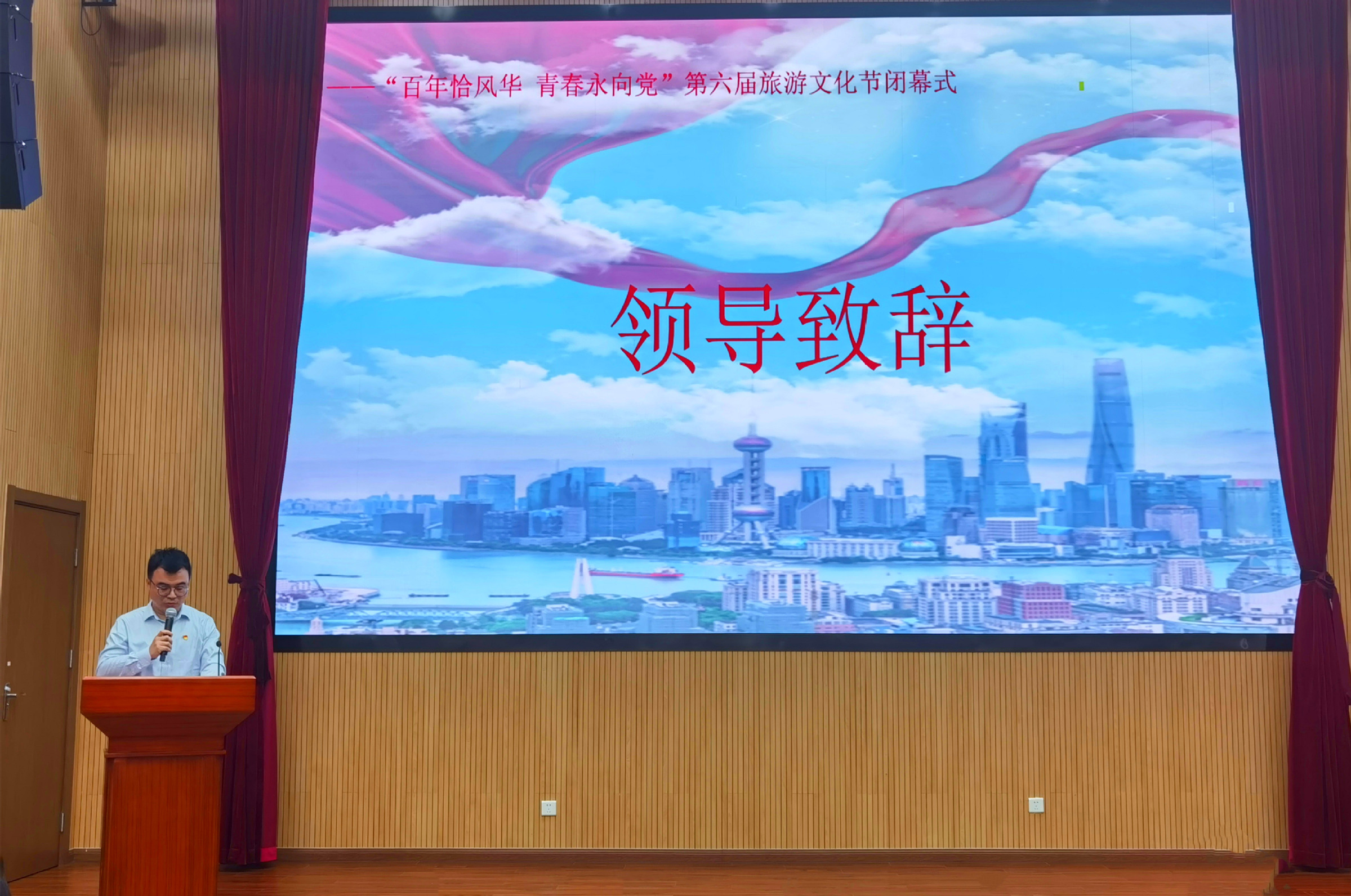 闭幕式上,旅游文化节组委会主任作工作总结汇报,第六届旅游线路设计大赛冠军队伍糖果超甜队带来《百年流通历史迹,申呈旧照焕新艳》项目展示,“少年”主题演讲大赛冠军张元华同学带来《朋友,少年是希望》的演讲,王春雷宣读本届文化节各项比赛获奖名单。