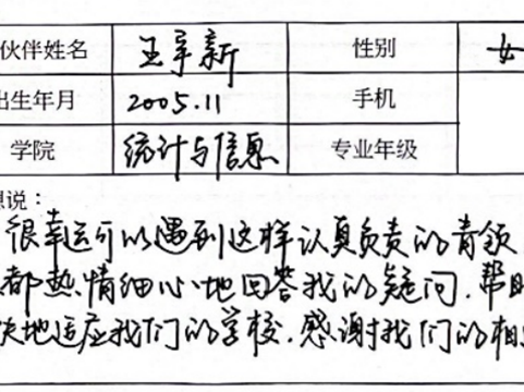 另外,我们三个青领之间形成了一个紧密的团队,共同为新生提供全方位的服务。