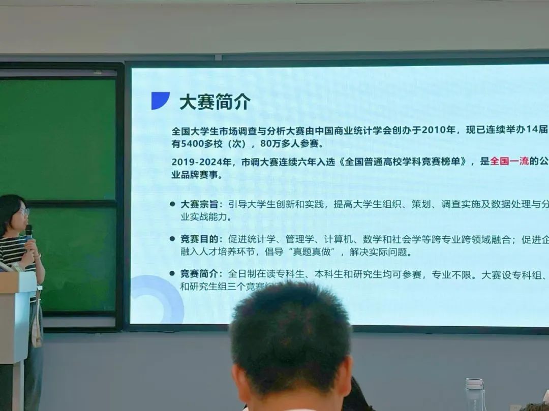 “正大杯”第十五届全国大学生市场调查与分析大赛主题宣讲于2024年10月14日(周一)17:00在学思楼SD2教室开展,统计与信息学院经济统计系邹欣悦老师为大家带来精彩宣讲内容。