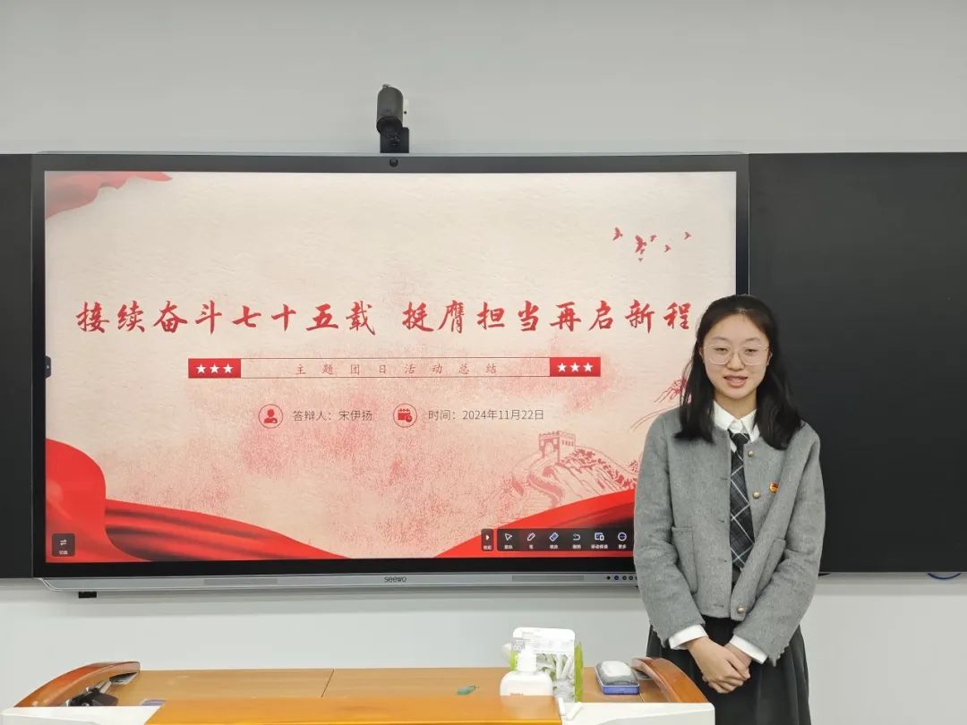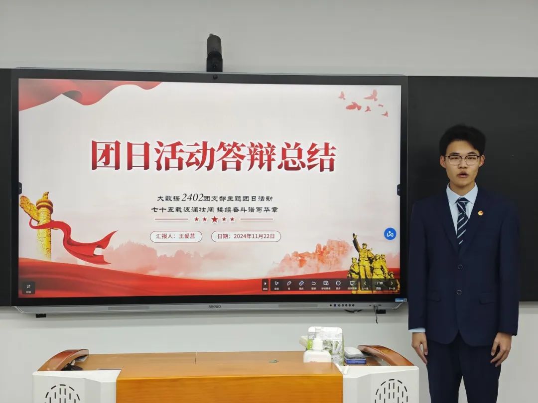 2024年11月22日,统计与信息学院“接续奋斗七十五载,挺膺担当再启新程”主题团日活动答辩会在学思楼SD408教室顺利举行。学院党建主管冯越、团委书记岳怡寒、团委副书记彭鹏、校团委组织部负责人徐欣然、统信学院学生团委副书记吴一凡、学生党建促进中心主任封冰悦以及全体2023级、2024级团支书参加会议,会议由统计与信息学院组织部石蕊婷主持。