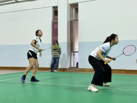 本场女双比赛我方派出陈毓琳和杨雨欣同学迎战。开局对方率先进入状态,拿下一局。我方调整状态和打法,在第二局中不断得分,但对方也毫不懈怠,我方以微小分差失利。第三局对方乘胜追击,我方一时不敌,遗憾落败。