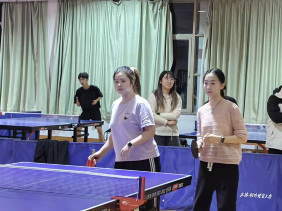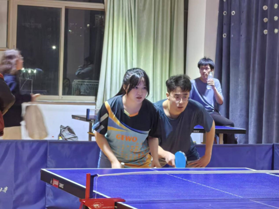 第一场是女子双打。我院胡佳乐、吴君怡选手迎战,双方选手都经验丰富,比分紧咬,以3:3打平,可惜我院选手接发出界失误,被对面找到机会,后半场落于下风。最终以3:6的成绩惜败。