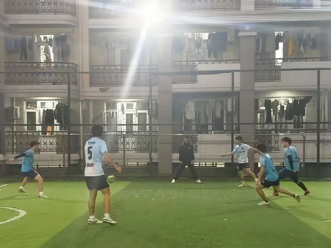 11月20号下午5点统信学院和外语学院的比赛开始,双方队员先入场问好,然后随着裁判的一声哨响比赛正式开始。上半场比赛我方球员充满干劲多次发起进攻,杨加洋接到由单瀚成传来的球发起射门,但对面也坚守球门抵挡住了我方多次进攻,尽管我方门将马桢多次抵挡下对方的射门还是让对方进了一球。上半场的比分停留在了0:1。休息过后,下半场比赛开始,我方球员张子民多次发起进攻而被对面球员严加盯守,其他球员们也默契配合,斗志昂扬,不断发起进攻,门将马桢多次拦下对面的射门,可惜对面防下我方多次进攻。下半场比赛结束,最终比分停留在了0:1,虽然比赛惜败,但比赛中我们队员都展现出了自己的拼搏精神,坚持不懈,期待他们下场更好的表现!