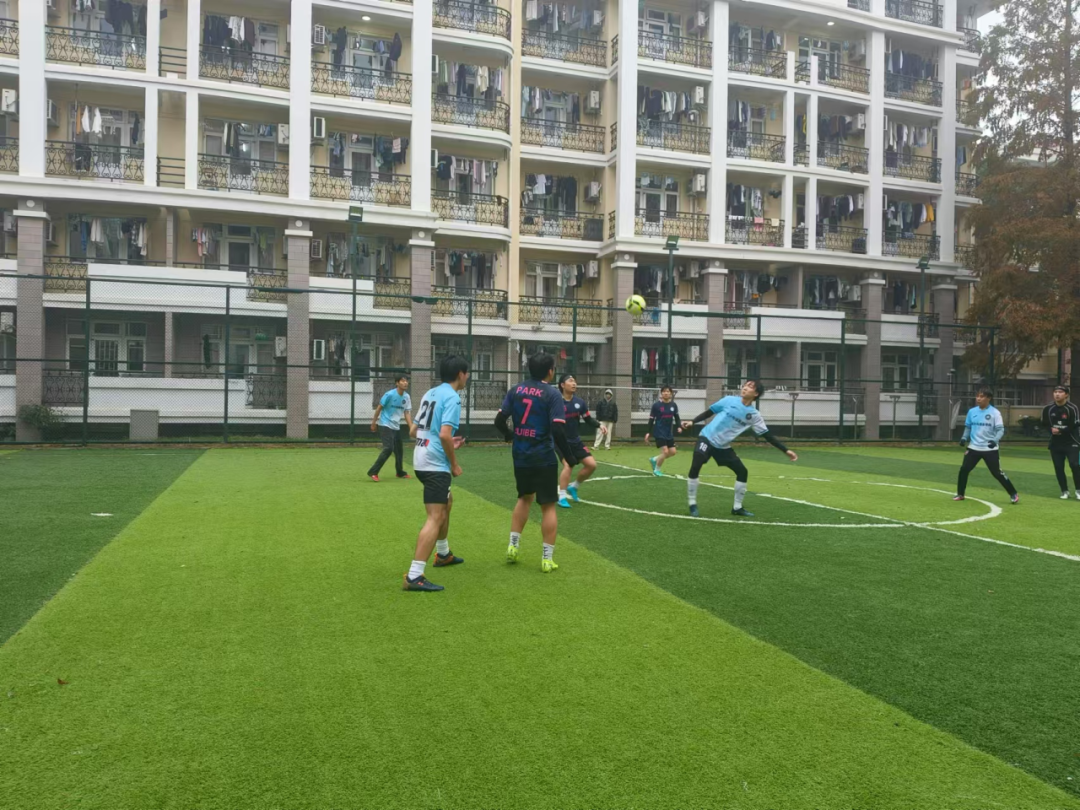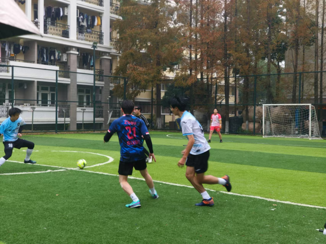 12月10日中午12:00统信学院和留学生学院的比赛开始,双方队员先入场问好,随着裁判一声哨响,比赛正式开始。上半场我方球员配合默契,多次积极发起进攻,刘宸浩多次对对方球员进行拦截,陆子轩与旺多杰配合默契传球,沈欣祥发起射击拿下一分,而后紧随其后我方柴敬亭也在队友的传球下射门进球拿下一分。虽然我方攻势激烈,对面也不甘示弱拿下三分。上半场比分停留在了2:3。休息过后下半场比赛开始,我方球员转攻为守,门将马桢锁定球,多次拦下对面射门,同时我方不忘抓住机会进攻,可惜对面仍然进了2球,最后比分停留在了2:5,虽然比赛惜败,但比赛中我们队员都展现出了自己的拼搏精神,坚持不懈,期待他们下场更好的表现!