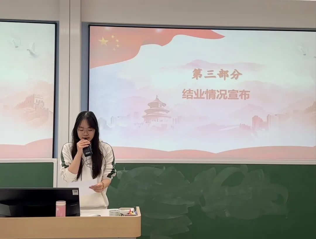 团委书记岳怡寒总结致辞,她首先向圆满完成学业的学员致以热烈的祝贺,并向辛勤组织培训的工作人员表达诚挚的谢意。她指出,青年一代应与时俱进,与新时代的步伐保持一致,把不懈奋斗作为青春最亮丽的底色,致力于提高个人的思想理论素养,锤炼出精湛的技能,全面提升综合素质,从而为个人的成长进步以及团学组织的蓬勃发展做出实质性的贡献,真正成长为值得信赖、能够担当重任的团学骨干。