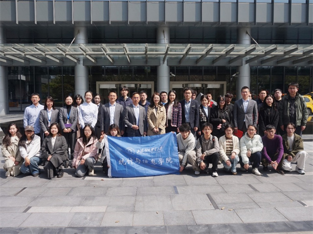 除了将金融科技方面的专家和企业请进校园外,统计与信息学院还积极加强与银行等金融机构的联系,主动将数字人才送到企业面前。4月,学院的就业大巴车直接开到了浦东陆家嘴泰隆银行上海分行楼下,10余位应届毕业生在银行工作人员的组织下进行面试。其余师生则进行参观学习和交流互动。