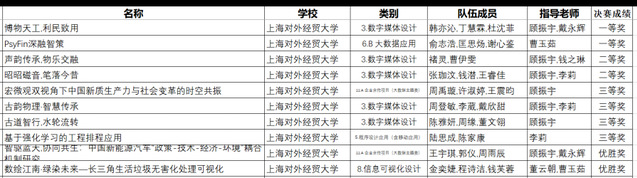 本届赛事我校共选派了14支队伍参赛,参赛类别覆盖了数字媒体设计、大数据应用、企业合作项目(大数据主题赛)、程序设计应用以及信息可视化设计等多个类别。经过激烈角逐,10支队伍成功入围决赛,入围率高达71.43%,在全市高校中位居前列。最终,统计与数据科学学院韩亦沁、金融管理学院丁慧霖、杜沈菲团队作品《博物天工,利民致用》(指导教师顾振宇、戴永辉)荣获数字媒体设计类别一等奖,统计与数据科学学院俞志浩、匡思炀、谢心鉴团队作品《PsyFin深融智策》(指导教师曹玉茹)荣获大数据应用类别一等奖。