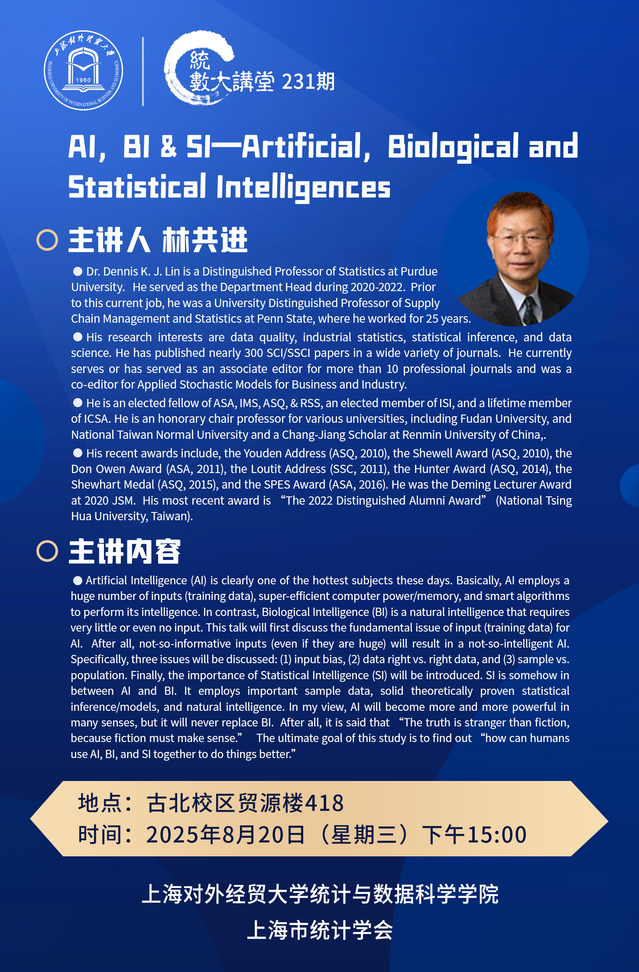 08.20 231 AI, BI & SI - Artificial, Biological and Statistical Intelligences