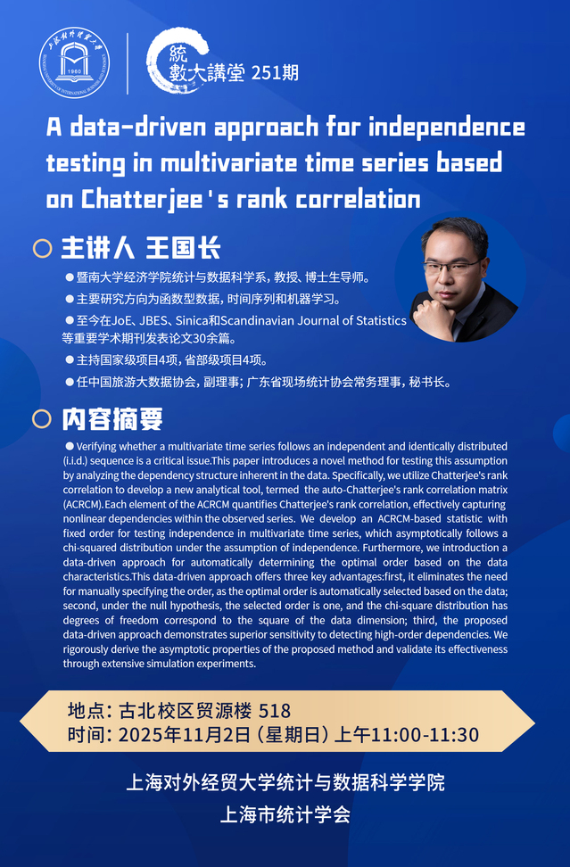 11.02 251 A data-driven approach for independence testing in multivariate time series based on Chatterjee's rank correlation
