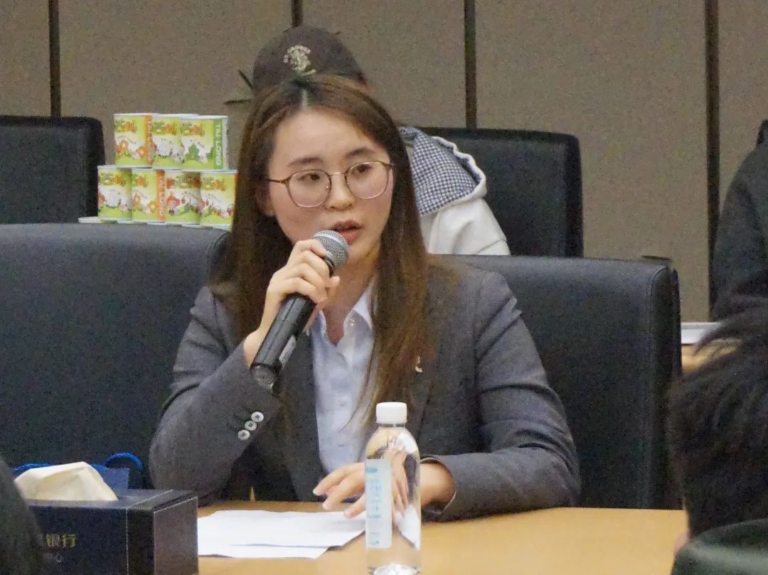 分享环节,徐申鸥同学分享了《数说贸易强国建设》微团课,她通过一系列的数字增长,详细展示了十年来我国对外贸易取得的成绩,表达了对贸易强国建设的信心和决心,并呼吁现场人员为贸易强国建设贡献自己的力量与担当。