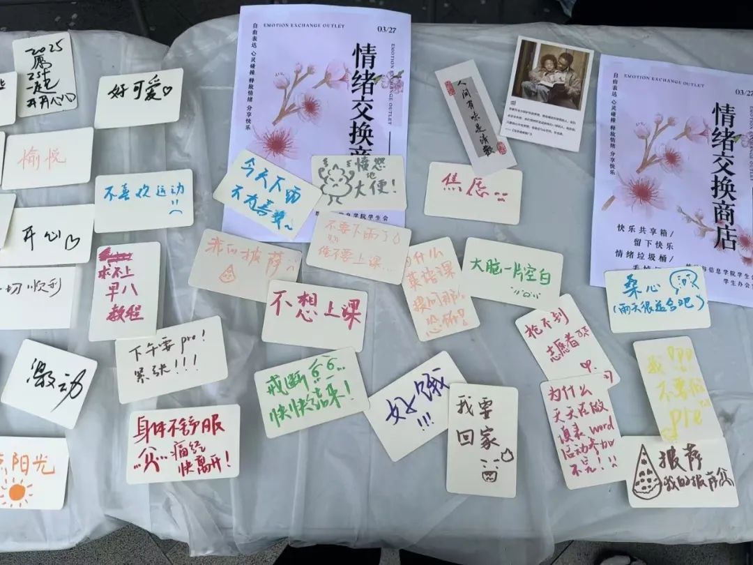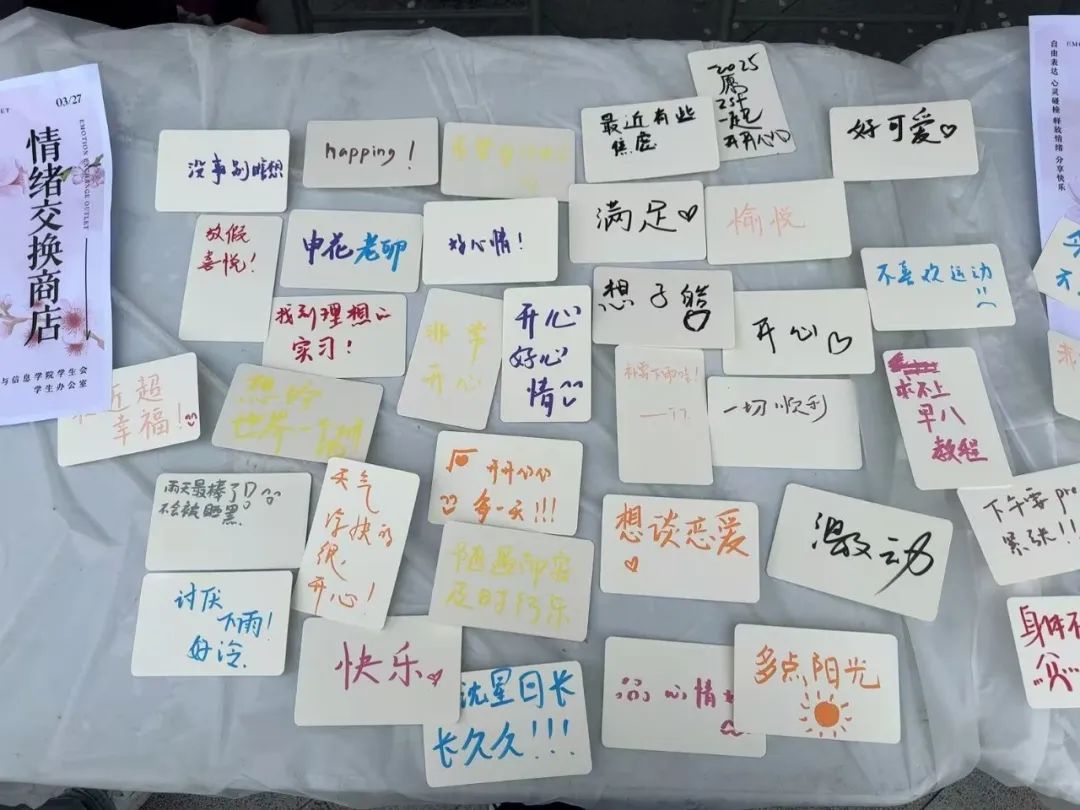 本次活动鼓励同学们在卡片上书写自己的情绪,共享快乐情绪,表达内心烦恼,释放压力,收获慰藉,共塑健康心理。活动中,同学们积极互动,在卡片中抒发着自己的情绪,现场气氛热烈而温馨。