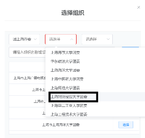 在团组织一栏,在三个下拉选择框中,分别选择:【团上海市委】-【上海对外经贸大学团委】-【统计与数据科学学院】