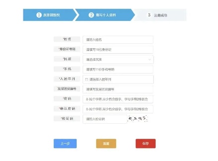 请点击【下一步】按钮,填写个人资料,*标注项为必填。完成填写后,点击【保存】。