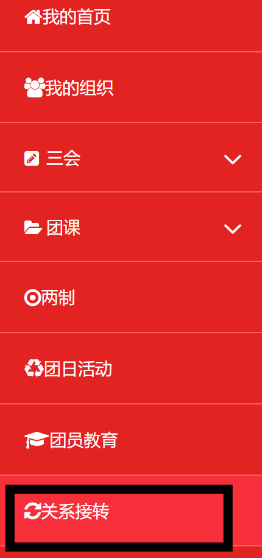 2、成功登录后,在左侧菜单栏选择【关系接转】。