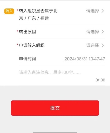 4、填写完成确认无误后提交。等候毕业学校团委老师(或毕业学校团支部书记)同意转出申请。