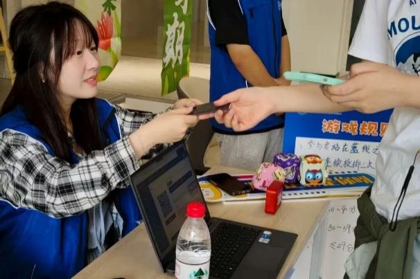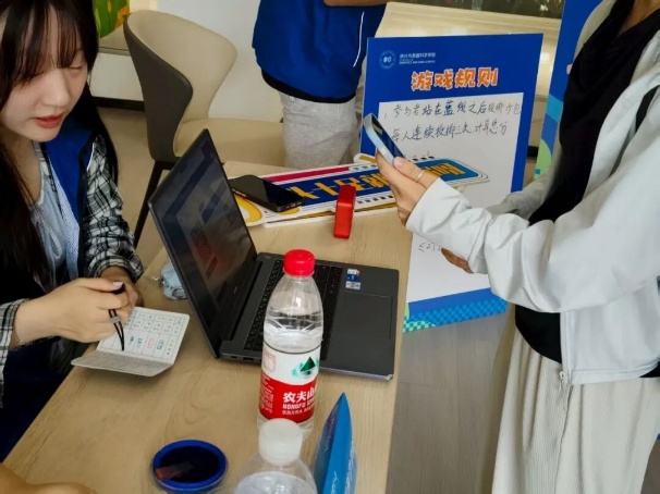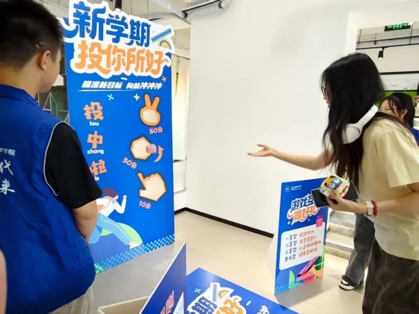 学院在报到处设置了“投你所好”游戏,获胜即可领取返校第一份活动小礼品~同学们有序参与,跃跃欲试。