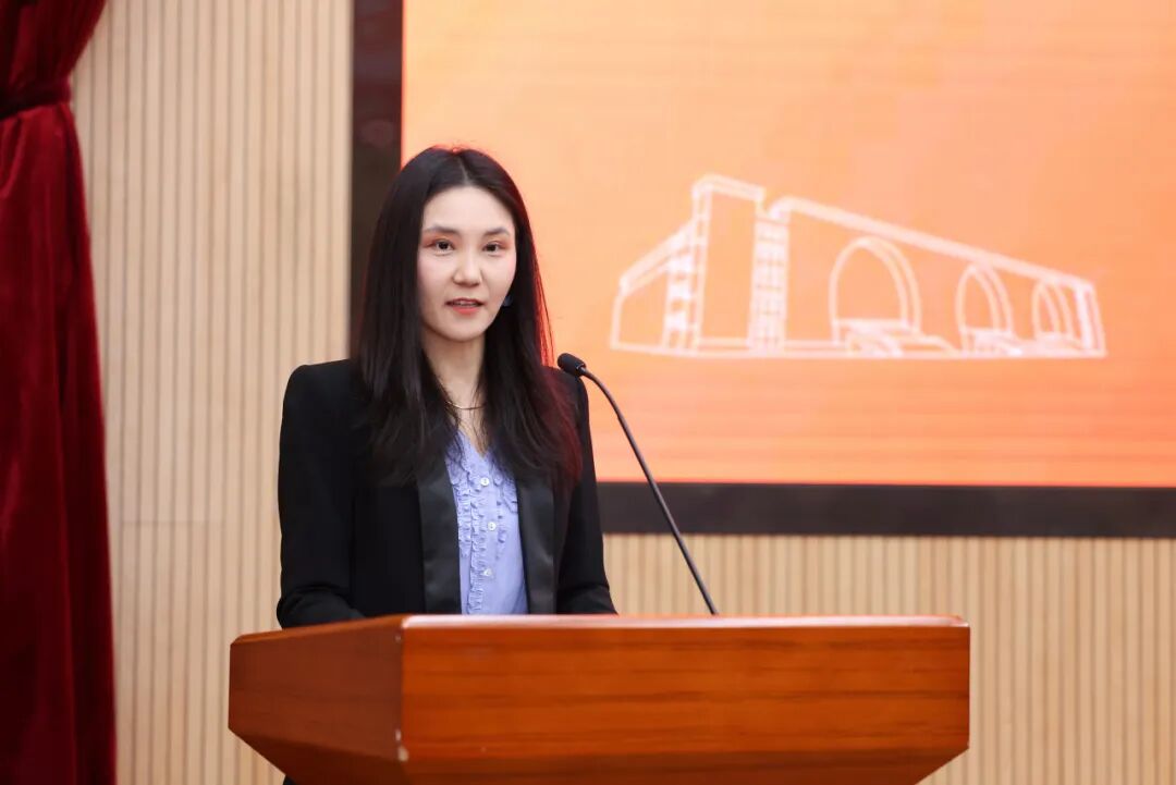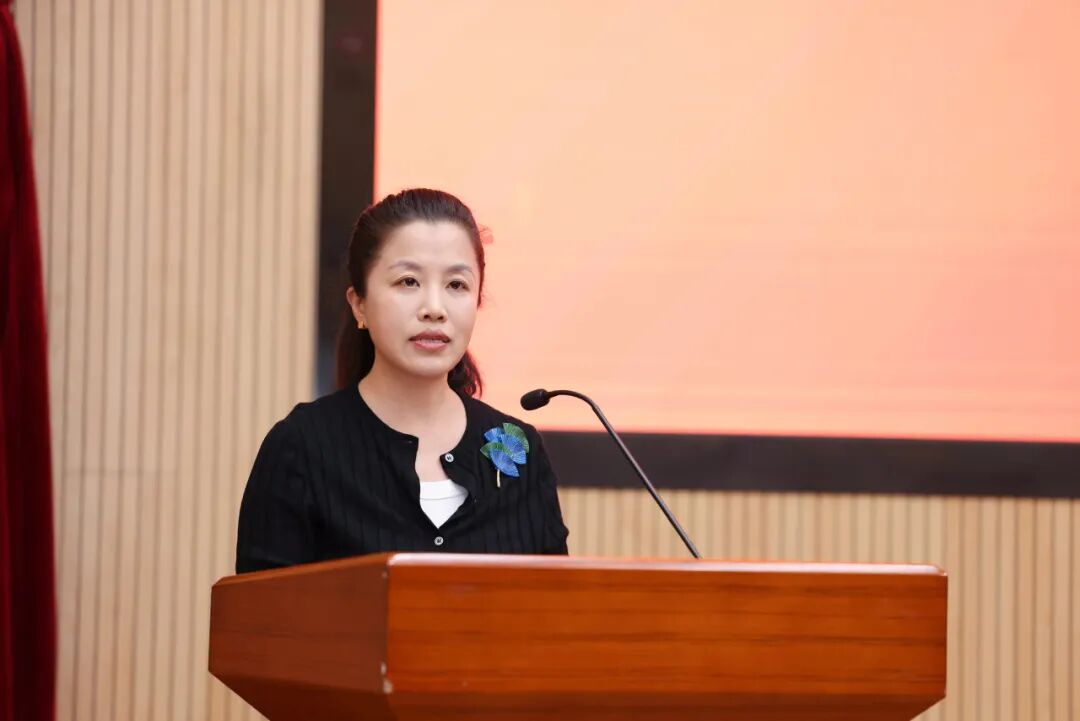 工商管理学院教师左鹏作为优秀指导教师代表发言。她回顾了与同学们一同参与万企项目的宝贵经历,对支持项目的领导嘉宾、企业单位和师生表示感谢。她分享了调研中师生共同学习、协作探索的过程,并呼吁更多教师携手带领学生在服务国家发展中成长成才。