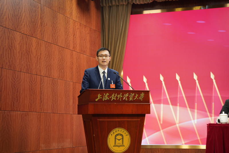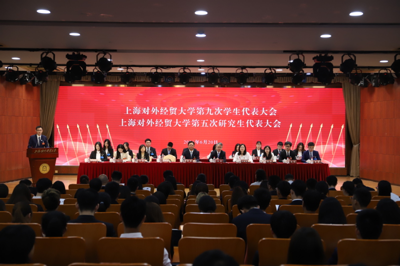 6月20日,上海对外经贸大学第九次学生代表大会、第五次研究生代表大会在松江校区图文信息大楼507报告厅召开,来自全校各学院的88名本科生代表以及38名研究生代表齐聚一堂。校党委书记殷耀,党委副书记、副校长祁明,市学联执行主席荆鸣昊,党委学(研)工部部长、学生处处长许继亮,党委研工部副部长、研究生院副院长乔檀,党委学工部副部长、学生处副处长赵静,各学院党委(党总支)书记、副书记,校院团委老师,以及来自上海兄弟高校学生会的代表,共同出席了本次大会。