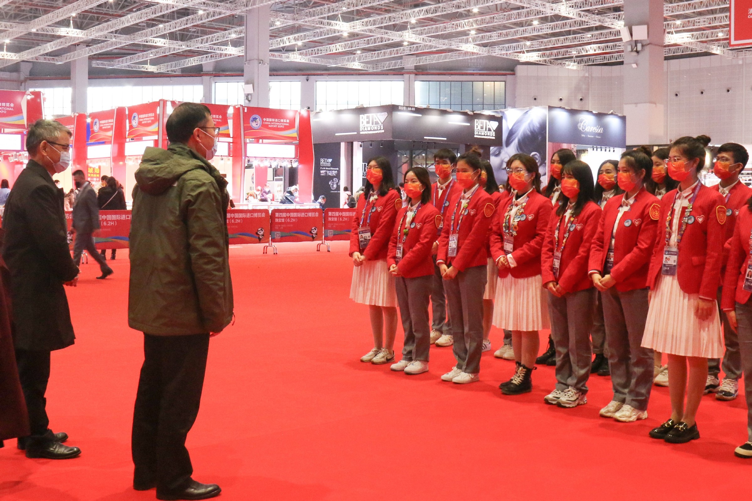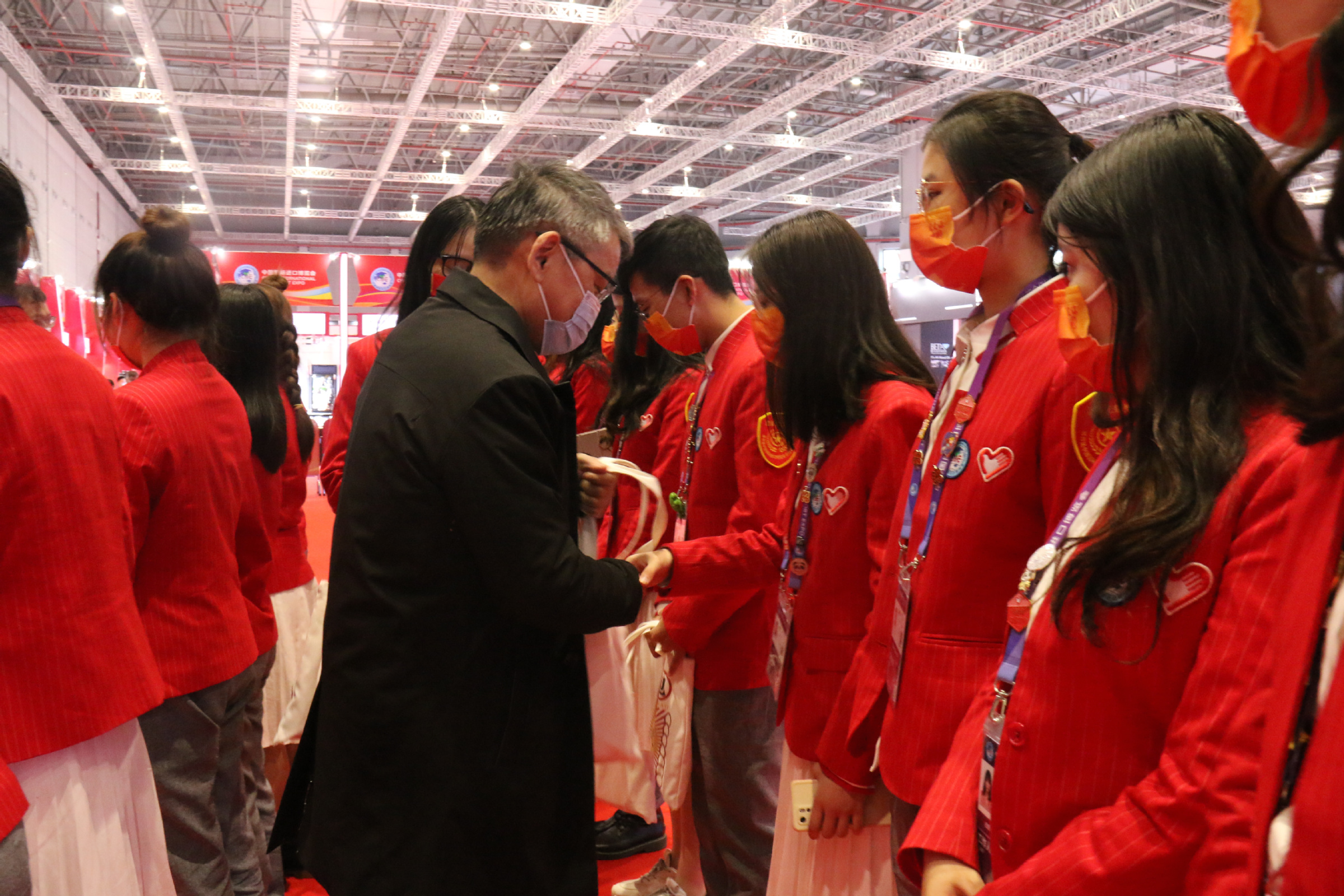 随后,汪荣明一行还看望了贸易洽谈区岗、配套现场活动事务助理岗、重点采购商礼遇岗、交易团现场协助事务助理岗以及一级“小叶子”体验官等岗位上的志愿者,询问了他们工作、学习、作息等情况,了解了志愿者服务期间的车辆、食宿、安全、课业等保障,并对志愿者们认真负责的态度给予了赞赏。