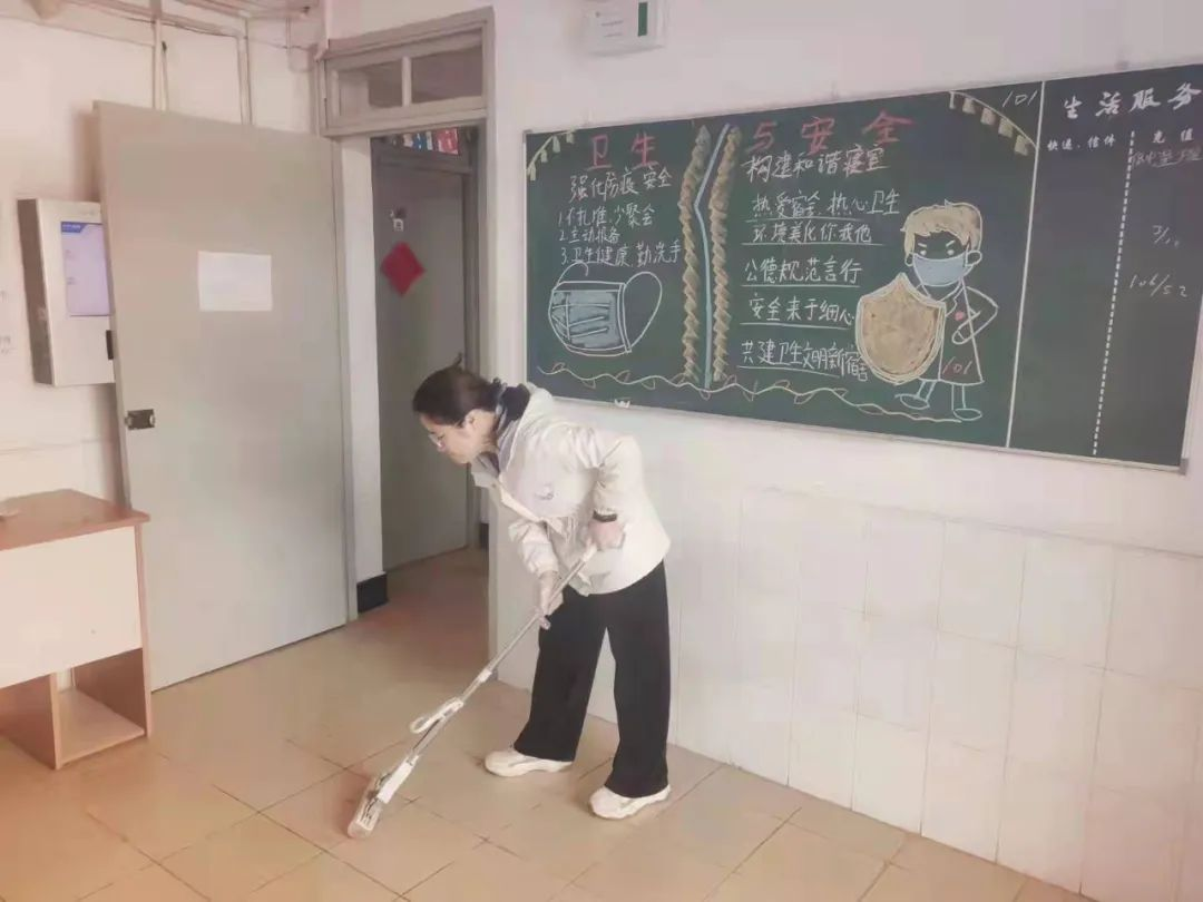 在目前极其特殊的时期,在冷漠的疾病扰乱我们正常生活的这段时光里,我们,作为Z世代新青年,应该不惧挫折与磨难,尽可能地奉献自己的一份力量去维护可贵的安宁。劳动是中华民族的优良传统,在大家集中隔离的期间,由于人员封闭,日常生活受到限制,有限的空间里人流密集,因此把控我们寝区生活环境的清洁成为一道难关,特别是每天都会经过的宿舍楼道。为了能让大家在更干净卫生的环境中更加积极地面对这次疫情,营造出更加文明和谐的社区环境,我和朋友们主动承担起日常打扫楼道的责任,成为寝区里默默付出的“清道夫”。