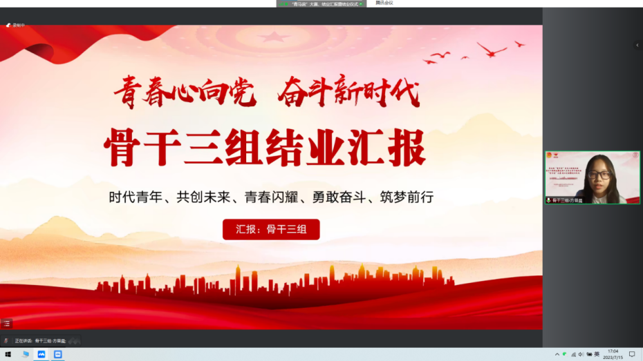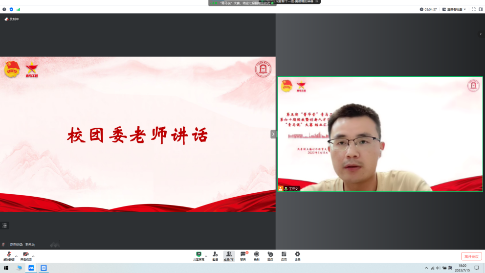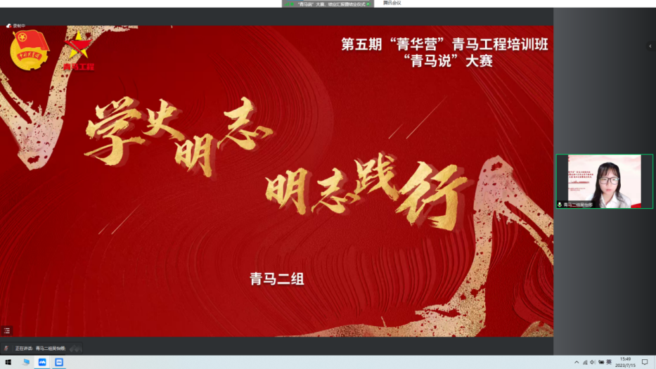7月15日下午,第五期“菁华营”青马工程培训班与第六十期团校暨创新人才学校学生骨干培训班“青马说”大赛暨结业汇报于线上开展。校团委、相关学院团组织负责老师、全体学员参与了本次活动。