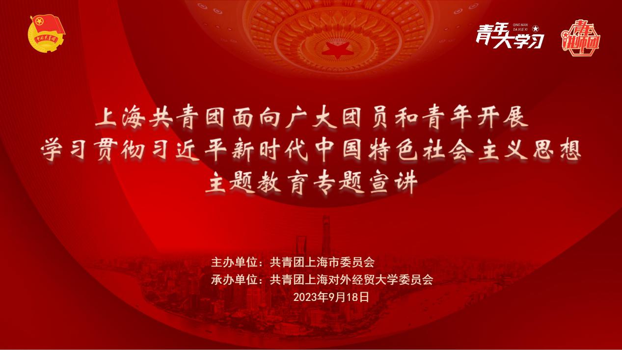 为全面贯彻习近平新时代中国特色社会主义思想和党的二十大精神,深入落实习近平总书记重要讲话精神,日前,团中央启动面向广大团员和青年的学习贯彻习近平新时代中国特色社会主义思想主题教育。为切实贯彻团员和青年主题教育要求,上海对外经贸大学共青团积极响应,结合新生入学教育,于9月18日,组织承办上海共青团面向广大团员和青年开展学习贯彻习近平新时代中国特色社会主义思想主题教育专题宣讲,并通过线上直播覆盖全校团员青年。
