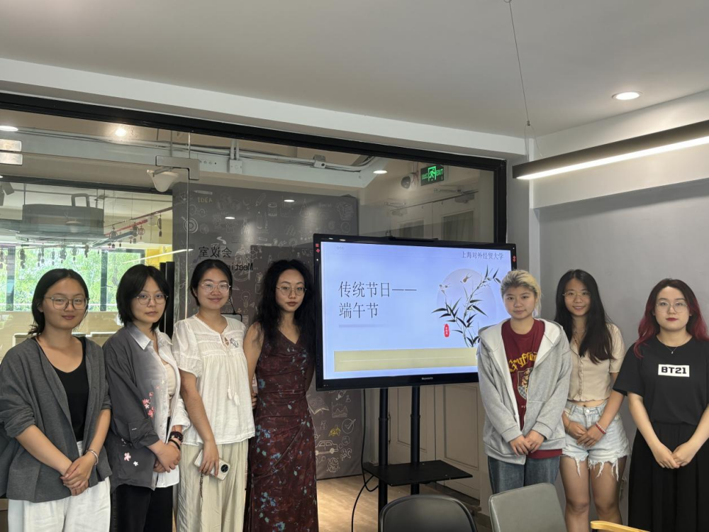 国际中文教育学院研究生杨羽淇结合自己家乡湖南岳阳纪念屈原的活动,以亲身经历阐释端午节的意义和当代价值。她带同学们一起体验编五彩绳、包粽子、赛龙舟等传统习俗,就同学感兴趣的端午习俗如为什么有南北甜咸粽子差异等进行了详细的解读。