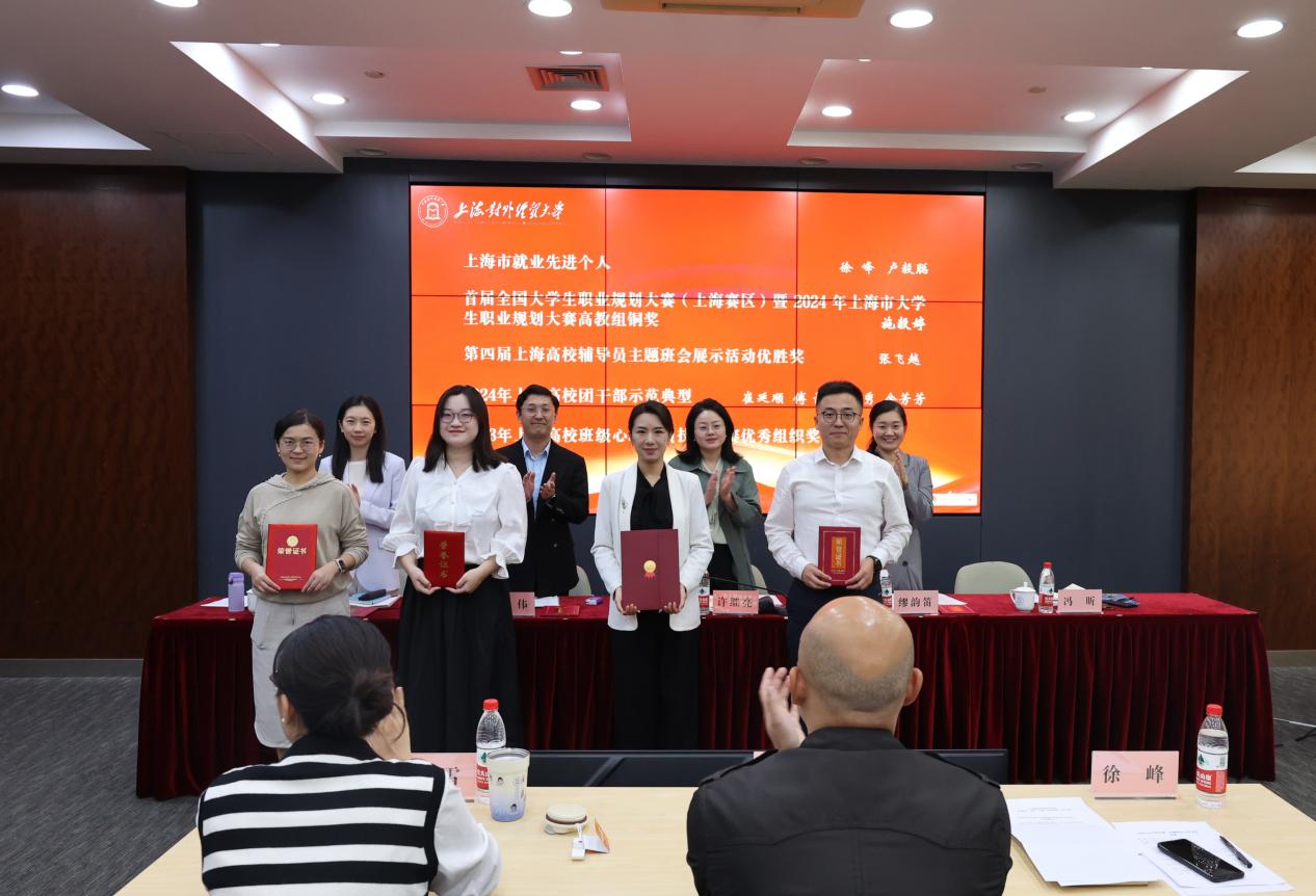 在会议交流发言环节,国际商务外语学院党委副书记徐峰、会计学院党委副书记施毅婷、金融管理学院辅导员刘一平、会展与传播学院辅导员张艺伟分别以《以世界眼光、中国情怀助力高校国际化人才培养》《热爱 匠心 悦纳 共生》《让知识退入背景,才能让知识进入问题》《立足思政教育实践,服务学生成长成才》为题作主题汇报。