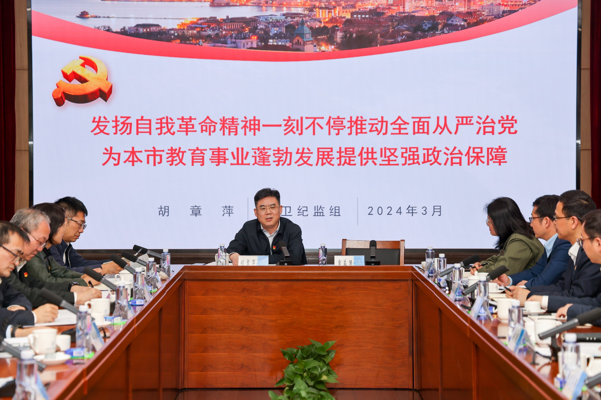 签约仪式结束后,双方校领导班子成员及相关单位负责人进行了首场联组学习。市纪委驻教卫工作党委纪检监察组组长胡章萍作了题为“发扬自我革命精神一刻不停推动全面从严治党 为本市教育事业蓬勃发展提供坚强政治保障”的专题辅导报告。胡章萍主要围绕习近平总书记关于党的自我革命重要思想的重大意义、当前上海高校党风廉政建设和反腐败面临的复杂形势,以及发扬自我革命精神一刻不停推动全面从严治党工作向纵深发展等内容作了系统讲解。辅导报告结束后,在交流发言环节,祁明表示学校党委将深入学习贯彻习近平总书记关于党的自我革命的重要思想,纵深推进全面从严治党,有力引领保障学校各项事业高质量发展。许涛表示学校党政领导班子将深刻领悟习近平总书记关于党的自我革命重要思想的重大意义,不断加强教师队伍建设,推动高校全面从严治党向纵深发展、促进高校治理体系和治理能力现代化。