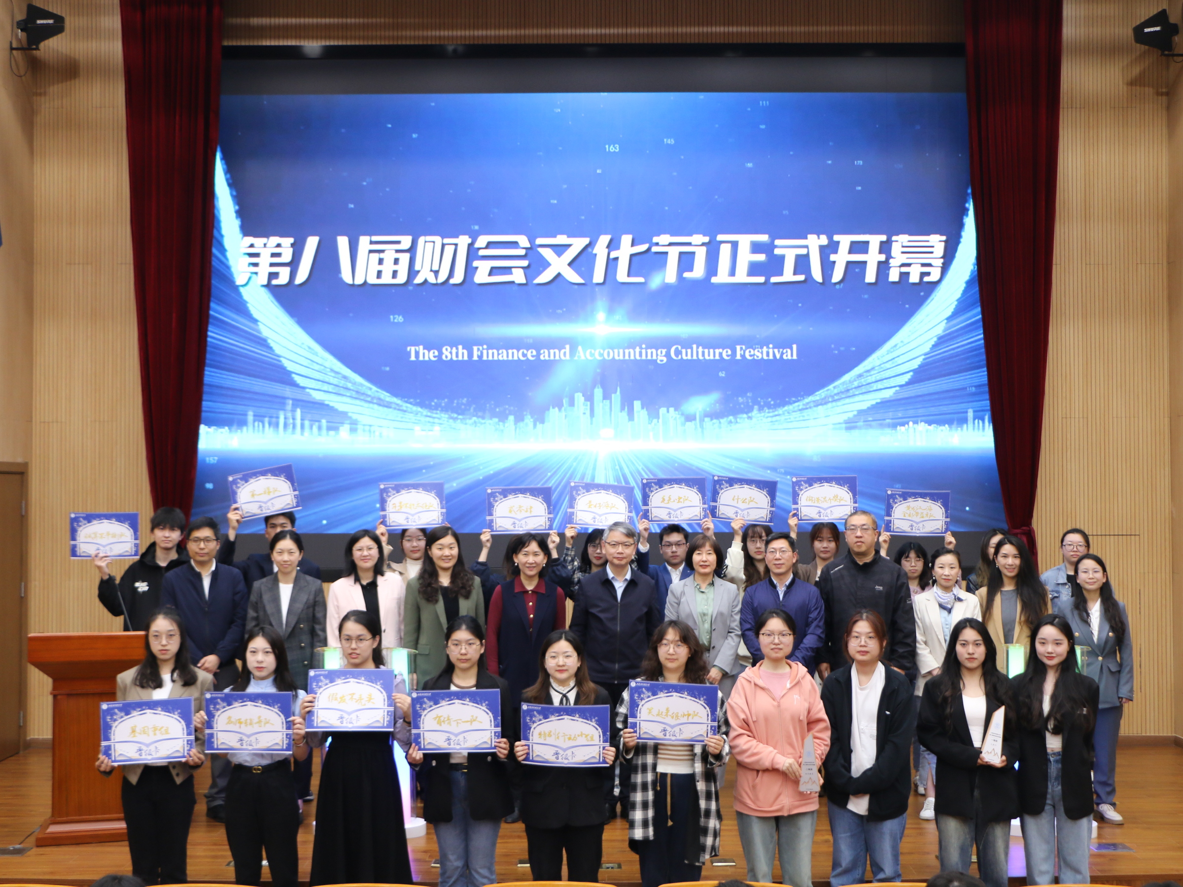 4月28日,由会计学院主办的上海对外经贸大学第八届财会文化节开幕式在松江校区图书馆401思源报告厅隆重举行。上海对外经贸大学党委书记祁明、会计学院党委书记张嵘、校党委学(研)工部部长缪韵笛、会计学院院长裴瑱、校党委宣传部副部长谢峰、研究生院副院长郝程程、教务处副处长王磊、校团委书记司徒力云、会计学院党委副书记施毅婷、会计学院副院长杨慧辉、会计学院副院长孙淑伟,以及参赛学生代表共同参加本次开幕式。